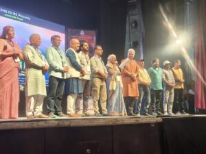 आंचलिक फिल्म ‘घंगतोल’ के टीजर व गीतों को भव्य अंदाज में रिलीज करने के उपरांत जोधा फिल्म निर्माताओं द्वारा मंचासीन सभी मुख्य, विशिष्ट व अन्य अतिथियों तथा फिल्म निर्देशिका सुशीला रावत का तालियों की गड़गड़ाहट के मध्य शाल ओढ़ा कर, आंचलिक टोपी पहनाकर तथा पुष्प गुच्छ भेंट कर सम्मानित किया गया।